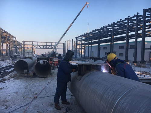 管廊整體搭設(shè)棚子,防止鋼結(jié)構(gòu)上出現(xiàn)雪和霜