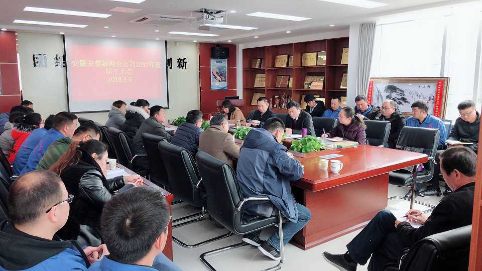 2018年3月6日,蚌埠分公司召開2017年度職工大會,公司黨委書記、副總經(jīng)理胡六中,工會主席、紀(jì)委書記李寬旭出席會議。會上對蚌埠分公司領(lǐng)導(dǎo)班子及成員進(jìn)行了2017年度民主考核。分公司全體員工參會。會議由分公司黨支部書記洪軍主持。