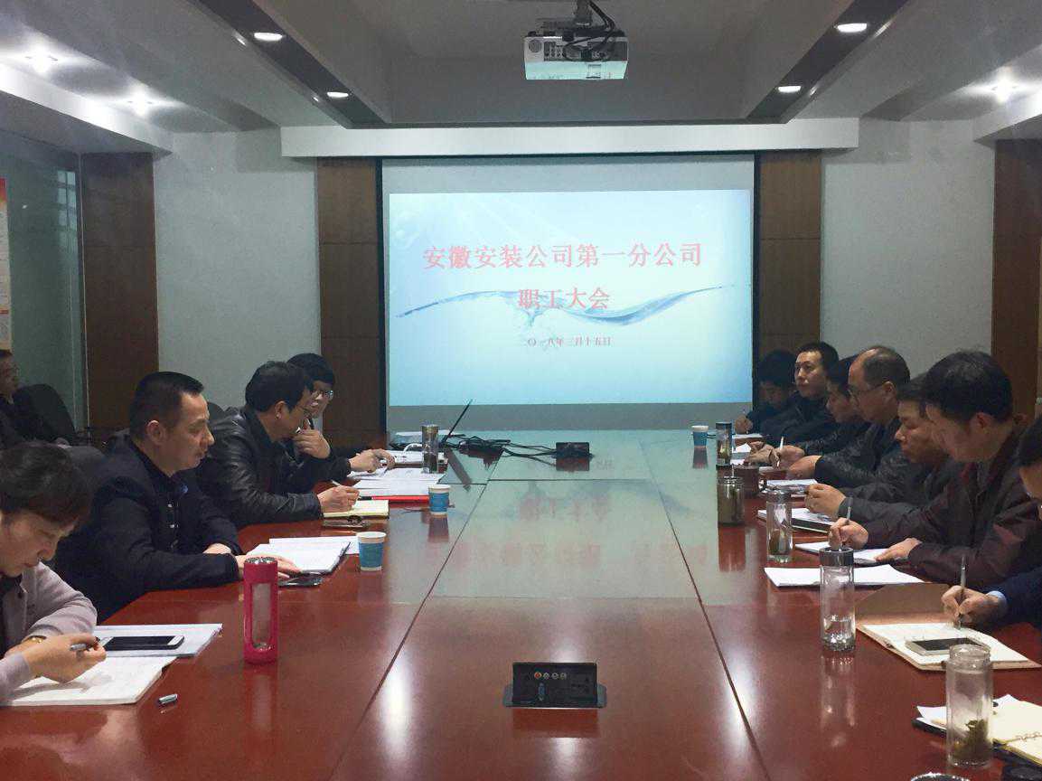 2018年3月15日,第一分公司在分公司機關(guān)召開2017年度職工大會。公司黨委書記、副總經(jīng)理胡六中,紀(jì)委書記、工會主席李寬旭,人力資源部經(jīng)理王敏等出席了會議,分公司機關(guān)全體人員及在肥項目部員工共36人參加了會議。會議由第一分公司黨支部書記胡迎東主持。