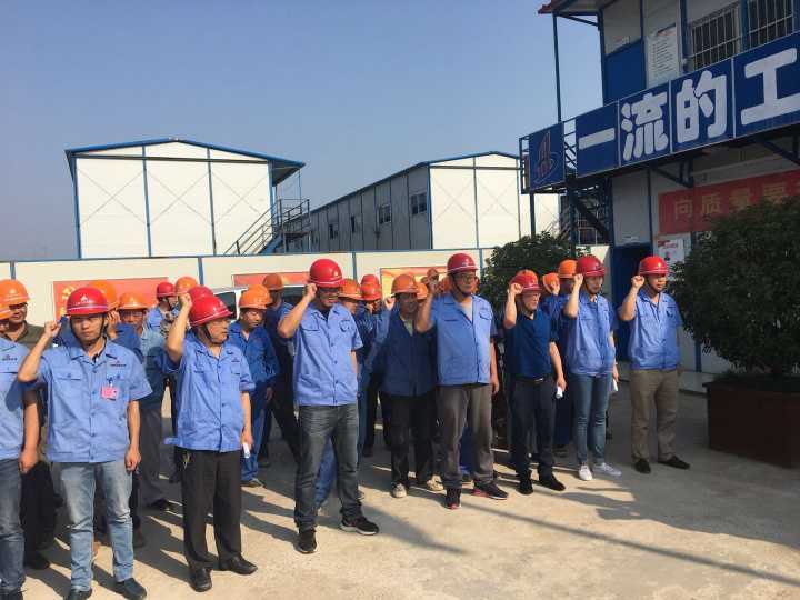 隨著儀式的展開,分公司副經(jīng)理張漢軍帶領(lǐng)全體人員進(jìn)行了莊嚴(yán)的安全宣誓。接著,分公司總工程師梁興邵現(xiàn)場進(jìn)行安全知識宣講,分公司工會主席、項目臨時黨支部書記程茂麗隨后宣讀了《關(guān)于在安徽中煙蚌埠卷煙廠項目部開展“中煙項目干勁足 安全生產(chǎn)爭先鋒”勞動競賽活動的通知》。最后,項目執(zhí)行經(jīng)理郭洋代表項目部表態(tài)發(fā)言:一定會以本次活動為契機(jī),加強(qiáng)現(xiàn)場安全管理,努力提升項目安全管理水平再上新臺階。