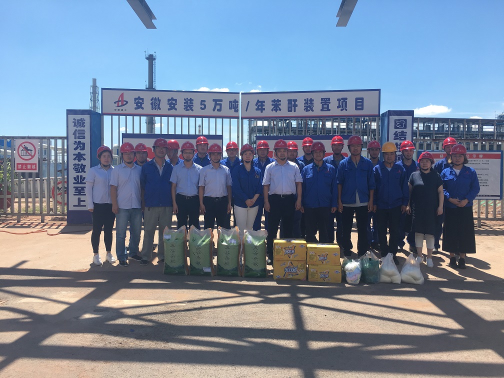 炎炎夏日,驕陽似火。為做好高溫季節(jié)防暑降溫工作,確保一線職工的健康安全,7月17日下午,公司董事長、總經(jīng)理、黨委副書記王軍邦,在紀委書記、工會主席李寬旭和副總經(jīng)理李原等公司相關(guān)部門負責人的陪同下,深入安慶分公司力天環(huán)保項目部,為堅守在一線的員工送去綠豆、白糖、礦泉水、藿香正氣水等防暑降溫慰問品。