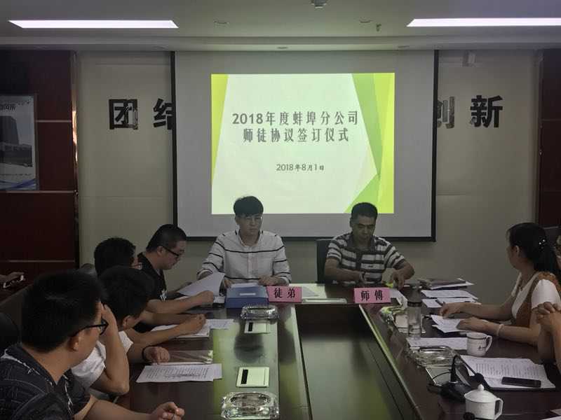 為了加快人才培養(yǎng),促進(jìn)崗位成才,2018年8月1日下午,蚌埠分公司舉辦了一場隆重的師徒協(xié)議簽訂儀式。分公司機關(guān)全體員工及項目部代表出席會議。會議由分公司工會主席程茂麗主持。