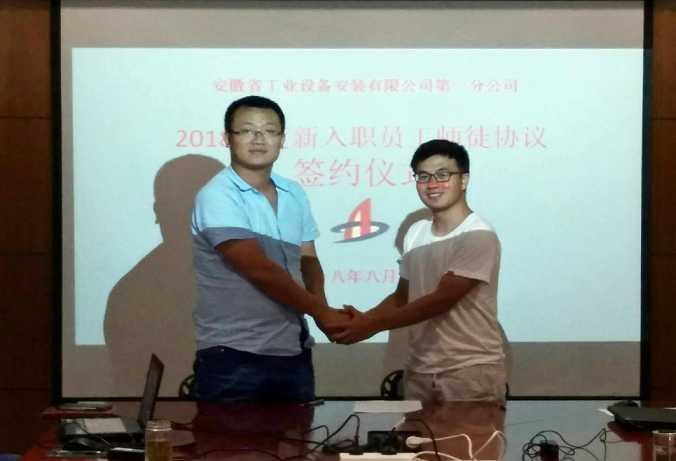 為了使新入職的大學(xué)畢業(yè)生能夠盡快地適應(yīng)企業(yè)、熟悉工作,盡快掌握崗位技能,幫助大學(xué)生早日成才,日前第一分公司特地挑選項目經(jīng)理與大學(xué)畢業(yè)生確定師徒關(guān)系,8月17日下午舉行了新員工師徒協(xié)議簽約儀式。