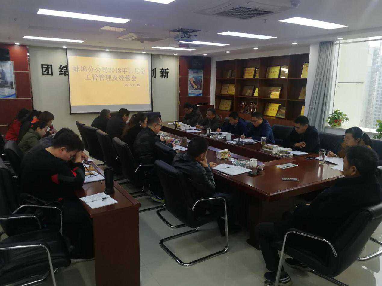 2018年11月18日下午,在蚌埠分公司會(huì)議室召開(kāi)11月份工程管理及經(jīng)營(yíng)工作會(huì)議。分公司領(lǐng)導(dǎo)班子成員、機(jī)關(guān)各部門(mén)負(fù)責(zé)人及項(xiàng)目經(jīng)理、聯(lián)營(yíng)合作單位負(fù)責(zé)人參加會(huì)議,會(huì)議由分公司副經(jīng)理張漢軍主持。