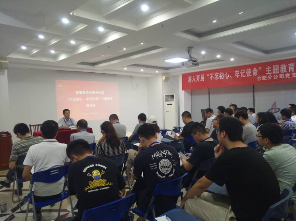 為深入開展“不忘初心,牢記使命”主題教育活動,將主題教育落到實(shí)處、產(chǎn)生實(shí)效,切實(shí)加強(qiáng)分公司黨員干部的責(zé)任感、使命感、擔(dān)當(dāng)感,合肥分公司黨支部于7月17日下午在公司十五樓職工之家召開了“不忘初心,牢記使命”主題教育座談會,分公司領(lǐng)導(dǎo)班子成員、機(jī)關(guān)全體人員、在肥項(xiàng)目部人員共計40余人參與會議。會議由分公司黨支部書記胡迎東主持。